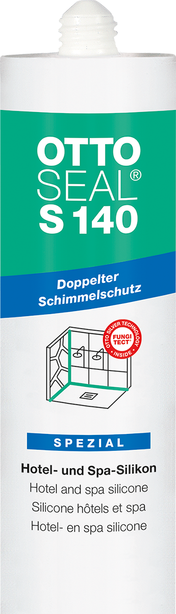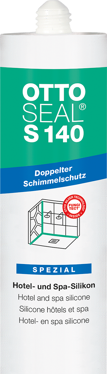 A OTTOSEAL® S 140 egy speciális szállodai és gyógyfürdői szilikon tömítőanyag, amelyet kifejezetten tartósan nedves higiéniai vagy uszodai területek tágulási és csatlakozási hézagaihoz fejlesztettek ki. Az OTTOSEAL® S 140 kettős penészvédelmével bizonyítja nagy erejét. A speciális szilikon a penészfertőzés elleni gombaölő felület mellett az ökológiailag ártalmatlan OTTO Fungitect® ezüst technológiával is fel van szerelve. Ez biztosítja a hosszan tartó illesztéseket még a szállodák és gyógyfürdők különösen erős igénybevételű területein is. Ezenkívül az OTTOSEAL® S 140 kompatibilis a természetes kővel, és nem okoz szennyeződést a peremzónákban.